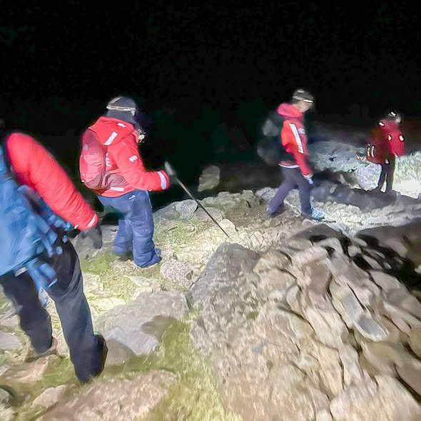 Cumbria Police reported four males who had climbed Scafell Pike but were unable to re‑cross the stream on their descent due to high water levels. The MRT Team Leader attempted to guide them to a safer crossing point higher upstream, but this was unsuccessful. A team was deployed, assisted all four across the swollen beck, provided warmth and reassurance, and walked them safely back down to their vehicles.