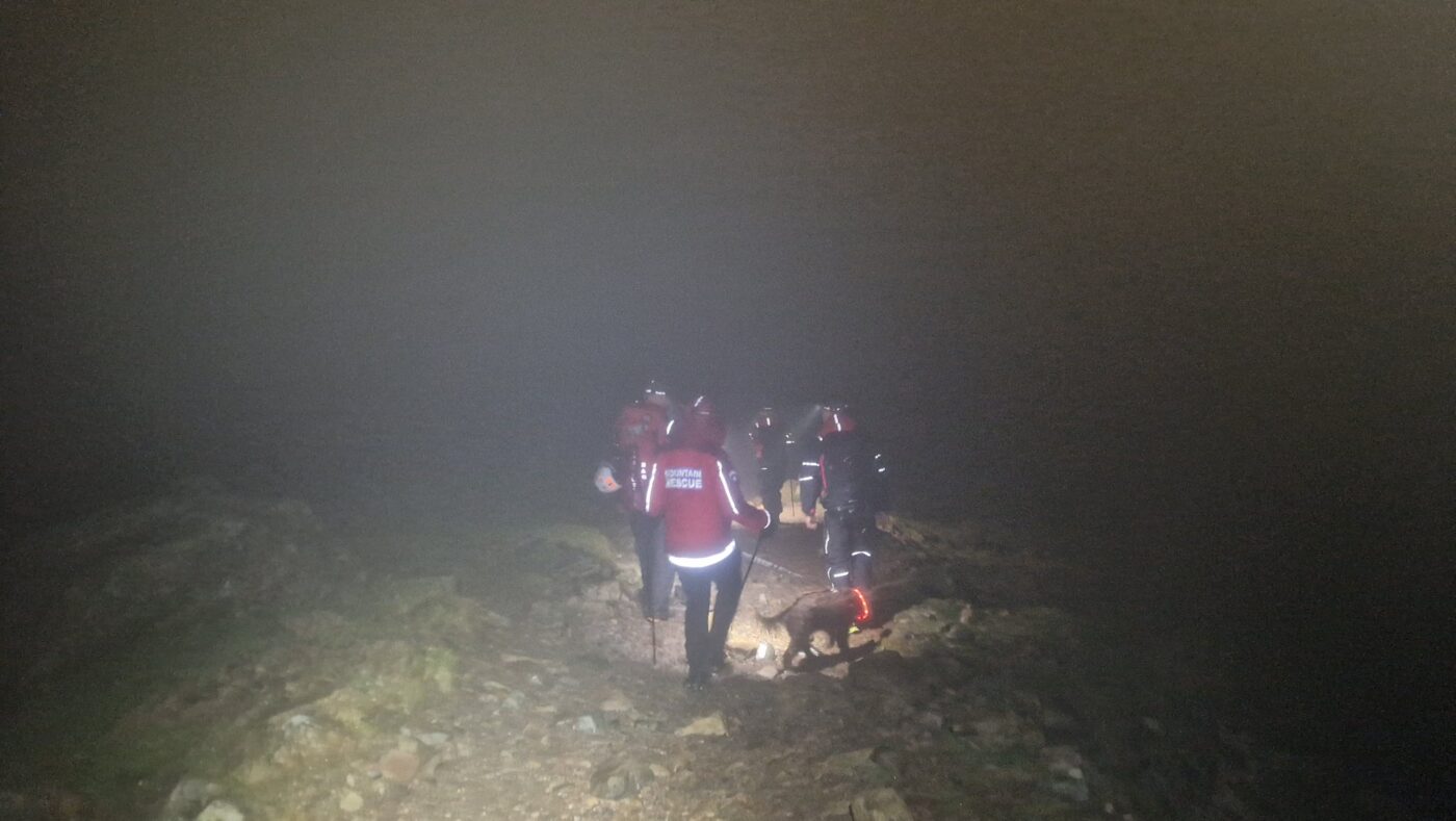 The team was called by Cumbria Police regarding a lone walker lost near the top of Piers Gill on the East side of Lingmell Col. With communications difficult preventing a ‘talk off’, the team was deployed. The walker and her dog were located in the position expected. Thankfully both were uninjured and only moderately cold, allowing an escorted walk back down the Brackenclose. A good outcome.